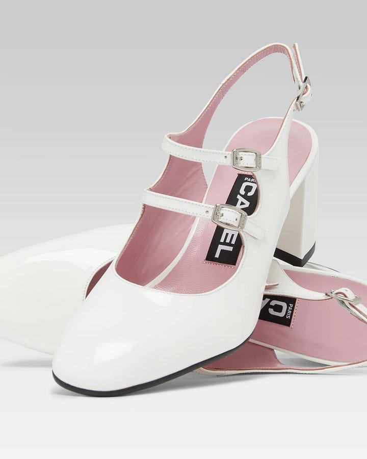 I run into this problem too! Because I like both white and cream, and use both in my wardrobe. I would say, literally just pick one and see where it leads you, because youâll be able to use both/either if you have both cream and white in your closet. If you donât, next time you buy an accessory or clothing item, try to buy it in the matching white or cream. Consider a belt or bag in a similar shade. I also find that patent pairs really well with the gloss of enamel jewelry. A white/cream enamel cuff or ring, for example, can make the shoes feel cohesive in your outfit. Indeed, matching your accessories to your shoes is an easy way to integrate a color into an outfit that might otherwise feel patchy or lacking coordination.